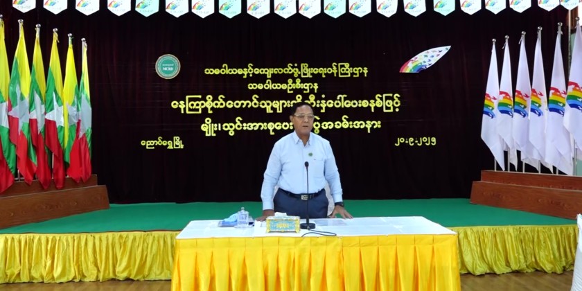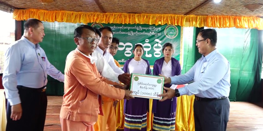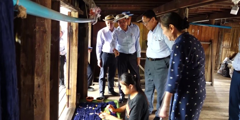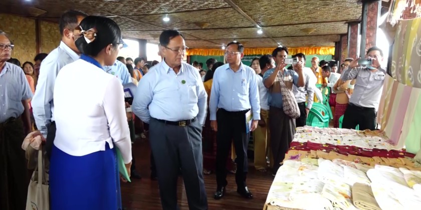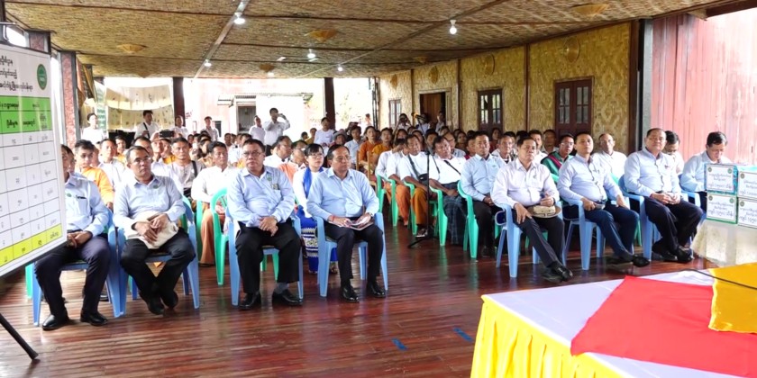 At the event, 825 million kyats fund for (48) villages were transferred to members of the village committees. Afterwards, the Union Minister and party visited the Natural Dying Class, organized by Departments of State Small-Scale Industries and NaungShwe Rural Development where they encouraged the trainees.