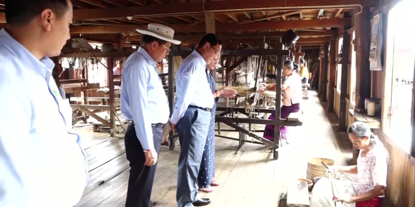 After coordinating the needs, the Union Minister and State Transport Minister provided seeds and inputs worth 1.5 billion Kyats to (25) Cooperative Associations. Next, the Union Minister and party visited InnPawKhone Smart Village in Inle area and observed the weaving industry.