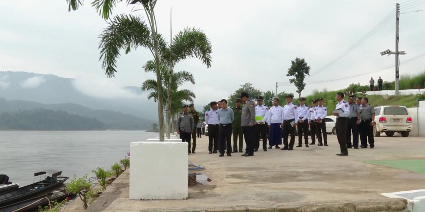 The Union Minister proceeded to the Maritime Police Force (Wan Pon), inspected the police vessel, and heard reports on the Mekong River security cooperation between police forces of Myanmar and Laos.
