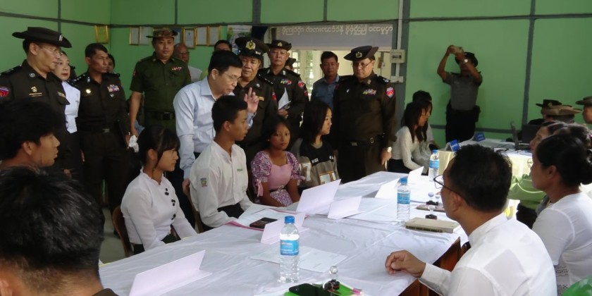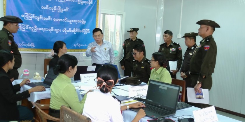 Union Minister for Immigration and Population U Myint Kyaing visited Tatkone Township on Friday to observe the ongoing household registration and citizenship scrutiny card issuance being conducted under Phase 3 of the Pan Khin Project through a One Stop Service system.