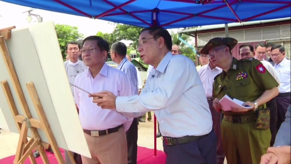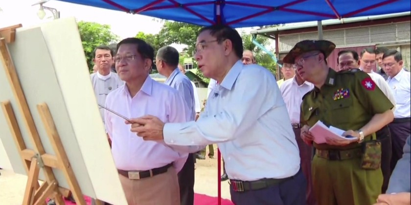 He instructed for the continue research works for ancient city wall and moat and reconstruction of entrance bridge to the old city if possible. The Senior General later arrived at Taunggoo Railway Station and heard reports on construction of detour rail road, plan for new railway station, and demarcation of railway and motor road and work progress.