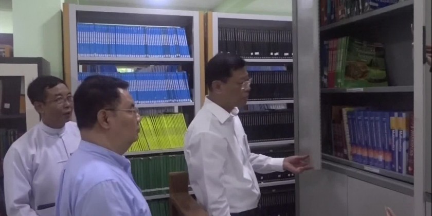 They then inspected the e-library system and documents and papers management of the library and the practical training system of the simulator training room of the university.  Later, the Union Minister and party met with the concerned officials under the Ministry at the Myanmar Port Authority Office in Kyauktada Township and instructed to nurture the new generations to become the qualified civil servants and to apply team work in implementing tasks.