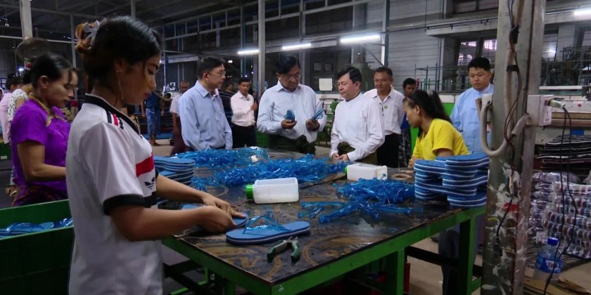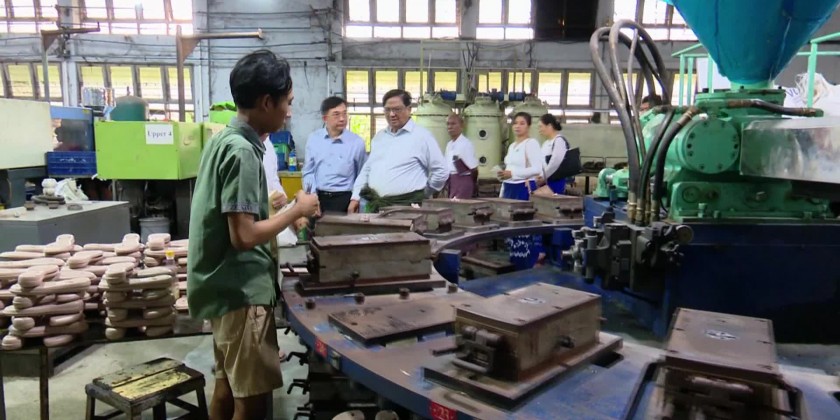 The Union Minister later inspected the production process of rubber based foot wares. Upon arrival at the Research Center in Insein Township on October 27, the Union Minister heard reports on research activities related to new medicine production, MSME products and wastewater management.
