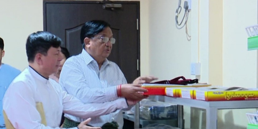 The Union Minister then proceeded to the Insein Pharmaceutical Factory to inspect production processes for timely medicine delivery ordered by the Ministry of Health.