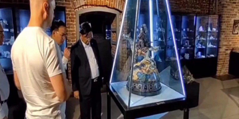 On 13th July, the Union Minister toured Stone-crafting House where the owner Alexey Antonov explained about his collection of animal fossils and various stones around the world, his stone sculptures in various sizes so also antique gold and stone paintings.