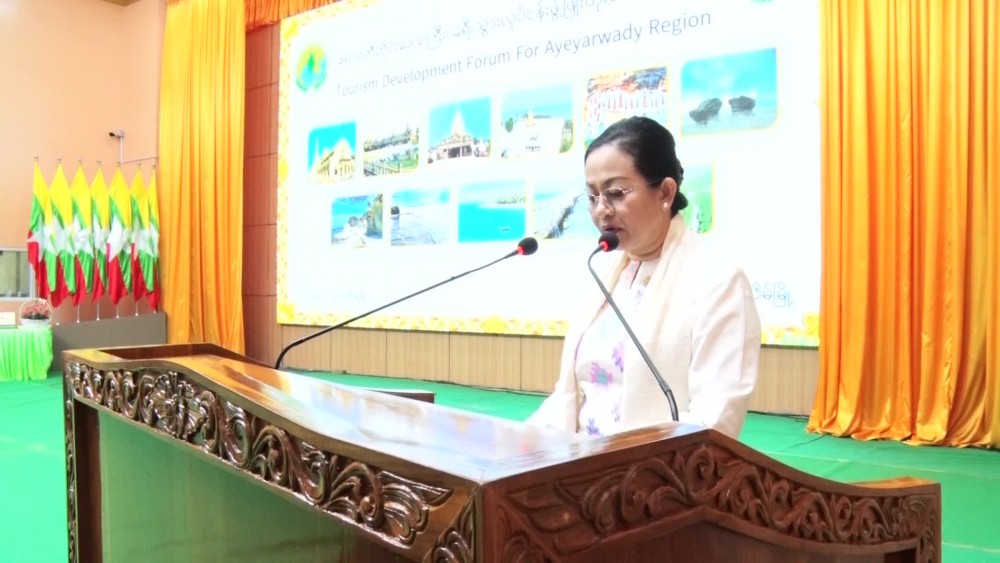 Union Minister for Hotels and Tourism Dr. Thet Thet Khine gave a remark at the Ayeyawaddy Region Tourism Industry Development Forum held at the city hall of Pathein, Ayeyawaddy Region in the morning on 10th September. Speaking on the occasion, Union Minister Dr. Thet Thet Khine said that the Ayeyawady Region Tourism Development Forum is organized to facilitate the development of tourist destinations within Ayeyarwady Region.