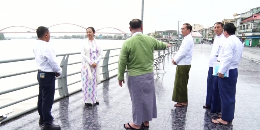 Subsequently, the Union Minister toured the designated rest areas along the Ngawun Riverbank, which are intended for tourists' relaxation. She also visited the site of a project by the Ayeyarwady Region Development Committee, which is working on upgrading a three-tiered garden. She reviewed the progress and provided guidance on necessary improvements.