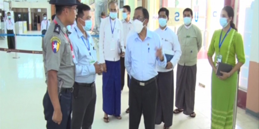 At Nyaung U Airport, the Union Minister met with the staff and gave instructions on providing information on tourism data, making constant checking for accuracy of QR Code, and providing better services to the tourists.