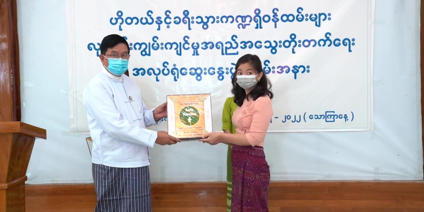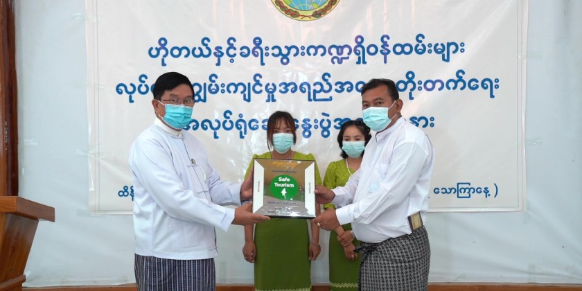The Region Chief Minister then presented Health and Safety Protocol National Level (HSP) certifications to Htein Htein Tha Hotel-1 and Myint Mo San Hotel.