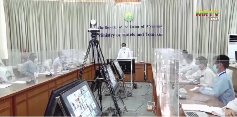 Union Minister for Tourism Dr Htay Aung attended a coordination meeting on resuming of international tourism at the Ministry via video conferencing on Monday.