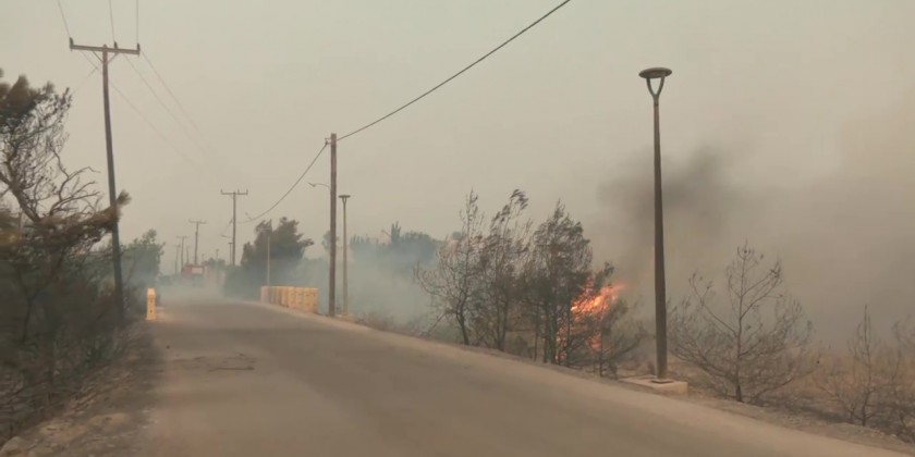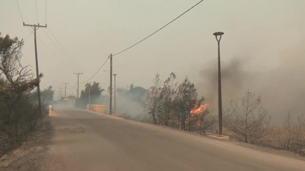 The Ministry of Climate Crisis and Civil Protection also told residents in the villages of Lardos, Pylonas, Asklipios and Kiotari to evacuate towards Gennadi. A total of 173 firefighters along with water bombers were in the area on Saturday afternoon. A large part of the island was without electricity as part of a series of planned power outages by the public power utility PPC which shut down the local plant in the south for safety reasons.