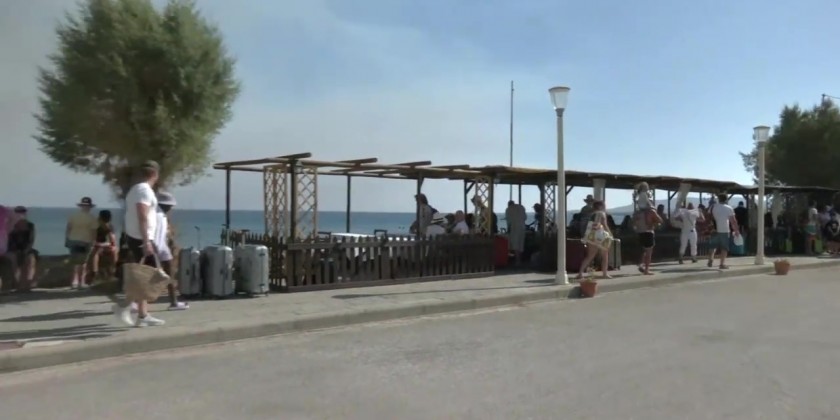 Hundreds of tourists had to be evacuated from three hotels that were later damaged by the flames on the southeastern coast of the island of Rhodes on Saturday as a huge wildfire that has been burning on the island since Tuesday morning continued to spread swiftly. Tourists in the area of Kiotari were gradually being transferred to a nearby beach and from there to safe areas in other parts of the island, authorities said.