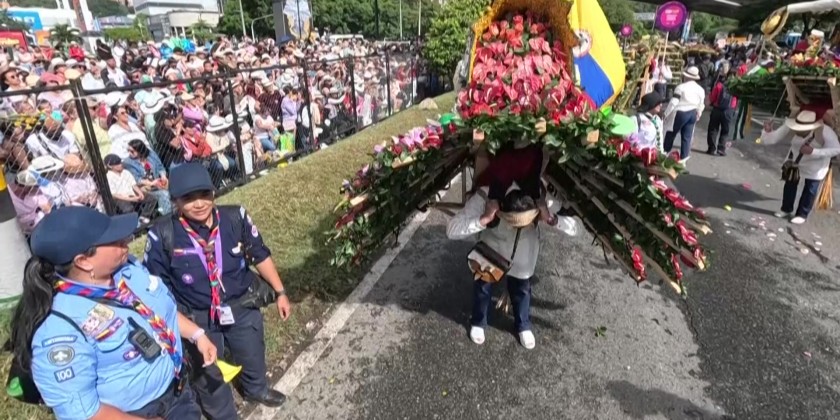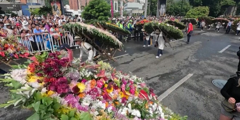 People parade in the traditional "silleteros" parade, the main event of the Medellin Flower Festival, in Colombia on Sunday. This vibrant celebration, which has been running for over 50 years, honors the city's flower-growing traditions and includes various other activities like dog shows, automobile parades, and beauty contests.