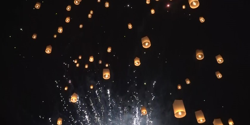 The Shan State Chief Minister U Aung Aung then pressed a button to symbolically launch 200 small hot-air balloons and set off fireworks, officially commencing the Traditional Mee Shaw Daing or firework pole festival and the procession of Mee Kyar San မီးကြာစံ or creative designed candle-lit lanterns. The competing creative designed candle-lit lanterns procession teams and ethnic traditional dance troupes also performed.
