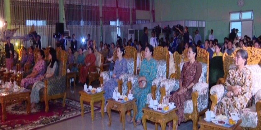 The wife of the Chairman of the State Administration Council and Prime Minister, Daw Kyu Kyu Hla, together with wives of the Secretary, Joint Secretary and members of the State Administration Council and senior military officers, Union level officials, deputy ministers and judges enjoyed the “Pyin Nyar Shwe Ohe” marionette drama.