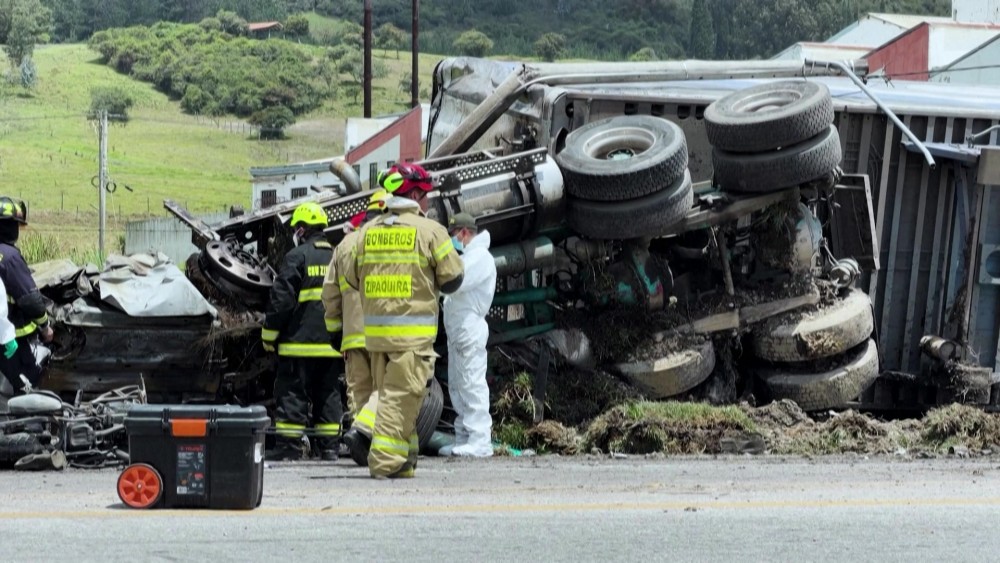 Colombian officials said that a pile-up at a toll booth on a busy highway in central country on Wednesday killed at least two people and injured 19. The crash happened when a milk truck lost its break and crashed into at least 11 vehicles at a toll booth on a road in the Cundinamarca region. The authorities ordered to remain road closed and at least 11 ambulances, firefighters and police officers were deployed to the area.