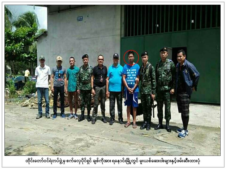 Around 2 a.m. on 7 July, the boat ran out of fuel, and it drifted to the shore, carried by the waves in severe weather. During interrogation, the four crew members, identified as Zaw Latt, Shwe Latt (a) Kayin, a mechanic, Kyaw Zin Thant, and Kyaw Soe Tun, confessed that they were hired by Chit Ko, the boat’s owner, and were paid Baht 5,000 per person. They said they were sent to a boat named ‘Ta-Aung Soe Kyaw’ anchored off the Thahtay Island.