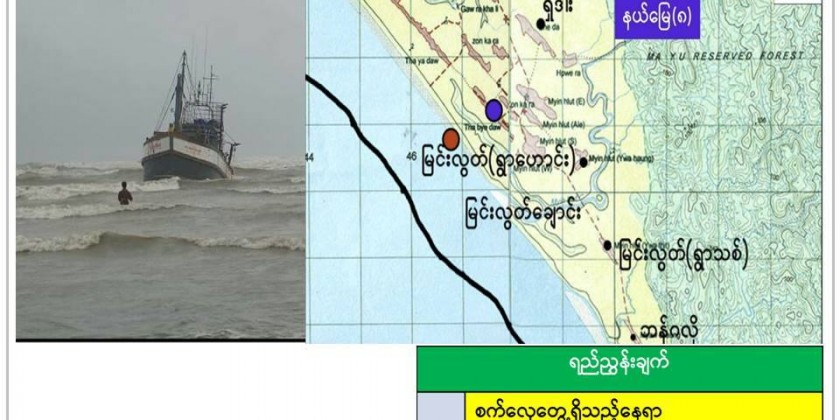 Acting on a tip, the border guard police had searched the area near the beach in Myinlut Village and found the boat, stranded and filled with water with 63 passengers and 4 crew members on board.
