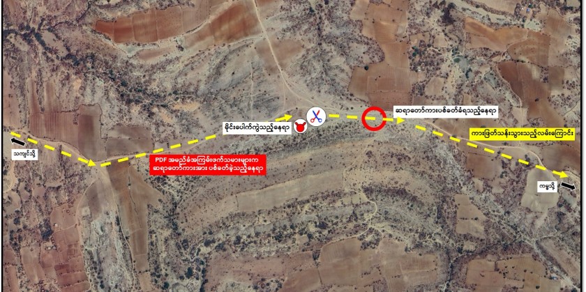 During an exchange of fire between the terrorists and the security forces, a vehicle traveling from Thakyin village to Myotha was caught in the explosion, resulting in a car crash about 250 meters from the site of incident.