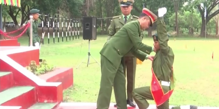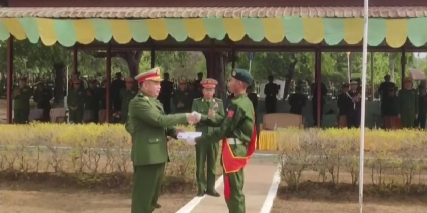 Young patriotic citizens from various Regions and States, who genuinely aspire to national stability, peace, and development and who enthusiastically volunteered to register in order to undertake national defense and security duties, have been receiving training through People’s Military Service courses. At present, the training completion ceremonies for People’s Military Service Training Course No. (22), were held on the morning of April 29 at respective training schools under the Regional Military Commands.
