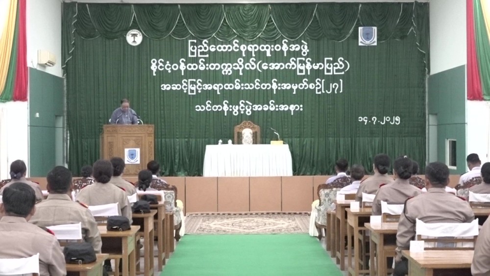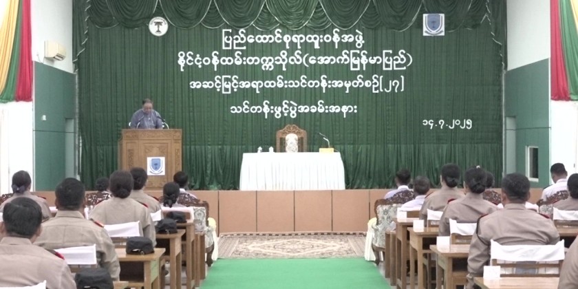 Member of the UCSB U Soe Tint, delivered the opening address on behalf of the Chairman of UCSB. He stated that the course was opened with the aim of enabling senior officers to correctly implement state policy processes and to think broadly and make sound decisions within their respective areas of responsibility. He also emphasized the importance of understanding the Civil Service Law and international laws, and of applying them in accordance with legal principles when performing administrative duties. Furthermore, he expressed the hope that the training would enhance the leadership capabilities of the participants in their administrative and managerial roles, ultimately shaping them into excellent future civil servants who can successfully carry out high-level state duties, prioritizing the interests of both the state and its people.