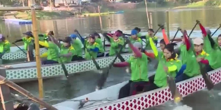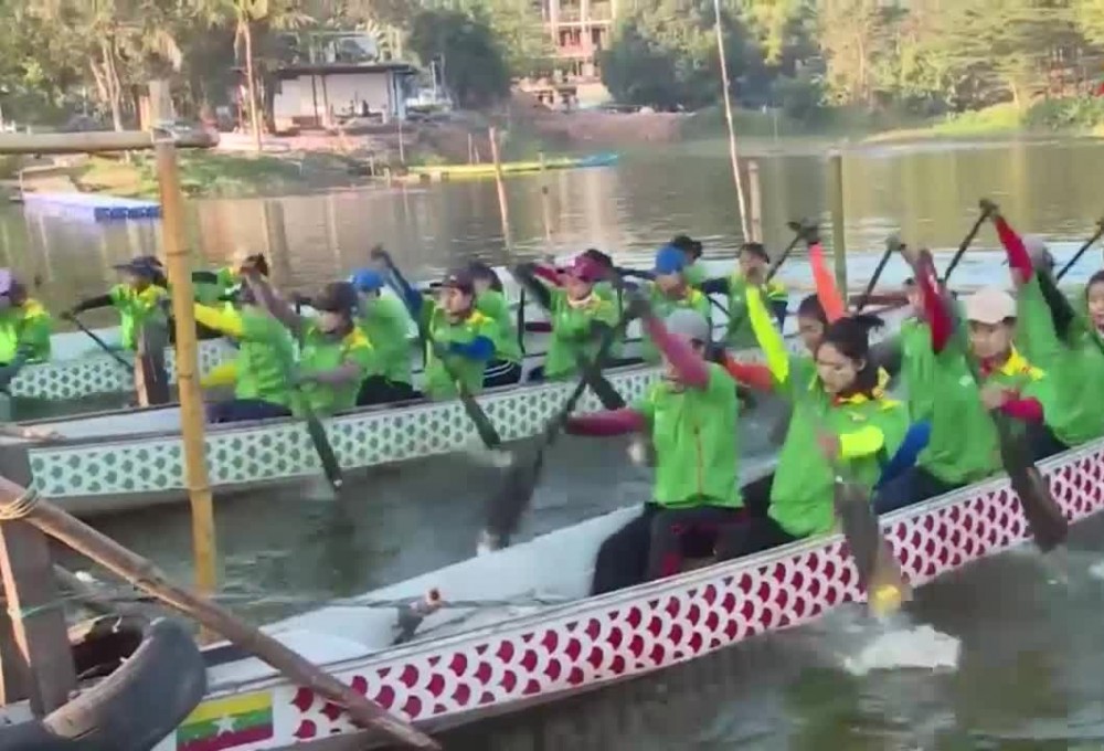 The traditional boat rowers are undergoing training to participate in the upcoming 32nd SEA Games hosted by Cambodia. Coaches from Myanmar Rowing and Canoeing Federation are giving training to the rowers.