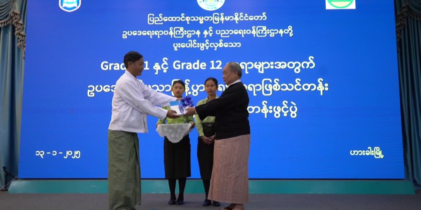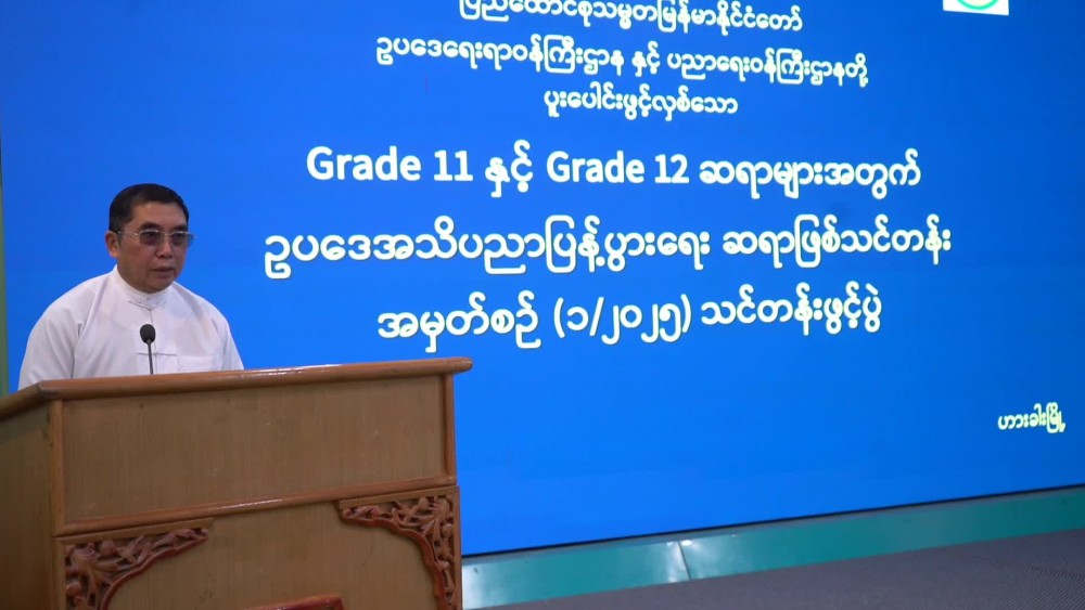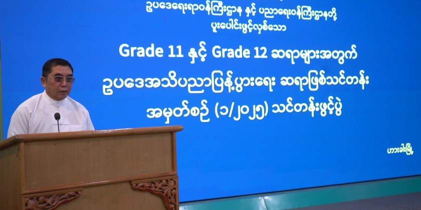 Following that, the StateAdvocate General, U Hsun Dote Kyinဆွန်းဒုတ်ကျင်, explained the details related to the training and handed over the curriculum of the Legal Knowledge Dissemination Training to the Deputy Director of the Chin State Education Office.