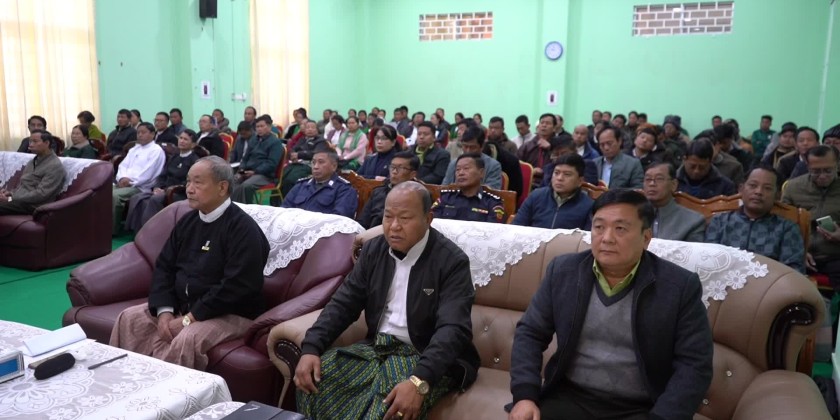 The opening ceremony of the "Legal Knowledge Dissemination Training for Trainers" Course No. 1/2025 for Grade-11 and Grade-12 teachers, organized jointly by the Ministry of Legal Affairs and the Ministry of Education, took place at the meeting hall of the General Administration Department in Hakha, Chin State. The event was attended by Chin State Chief Minister Dr. Wong Hsun Htan, state ministers, the State Advocate General, departmental officials, the teachers who would be participating in the training.