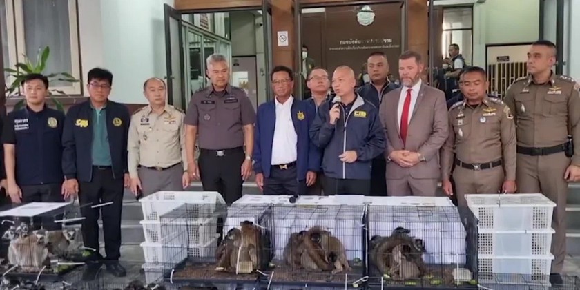 The police have apprehended a group involved in the illegal smuggling of protected wildlife from Indonesia into Thailand, seizing 48 lemurs and over 1,000 radiated tortoises.