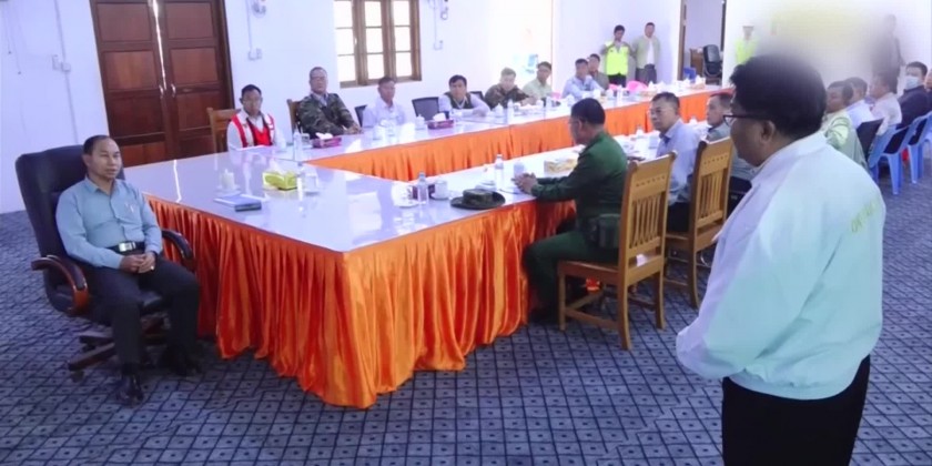 Sagaing Region Chief Minister U Myat Kyaw inspected construction of the Chindwin Bridge (Htanmanthi) in Homalin Township. At the briefing hall, the Chief Minister heard report on the ongoing construction process and plans. In his response, the Chief Minister called for quality construction, timely completion, work safety and security measures before fulfilling requirements.