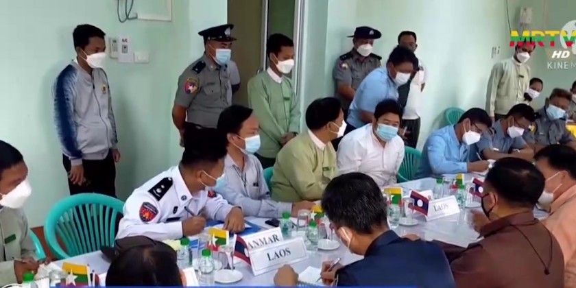 At the Myanmar side check point, a delegation consisting of members of the general administration department, health, labor and immigration, trade and police force sector under the supervision of Tachileik Township administrator U Tin Oo Kyaw and a delegation with 7 representatives from Laos discussed detailed rules and regulations which are to be followed by both parties.