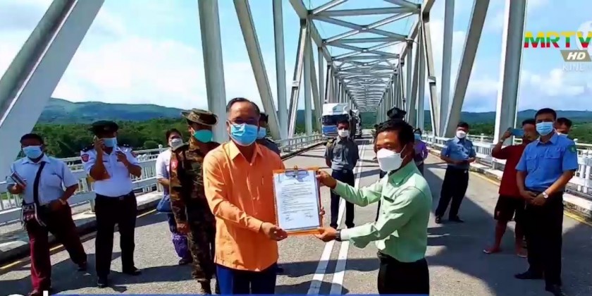 A Myanmar delegation led by township administrator U Aung Myo Htwe met with the delegation led by deputy township administrator from Tak District of Laos on the Myanmar-Laos Friendship Bridge to ceremonially open the Bridge.