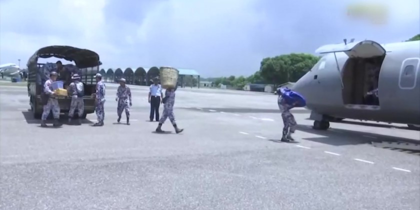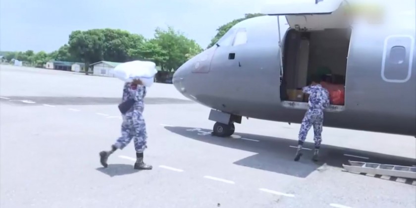 The relief materials and food items contributed by the families of Tatmadaw (Army, Navy and Air) and well-wishers, and relief supplies provided by the National Disaster Management Committee for local communities affected by natural disasters in Rakhine State are being transported by Tatmadaw aircraft, helicopters and vessels.