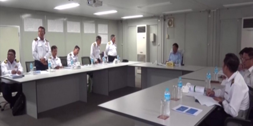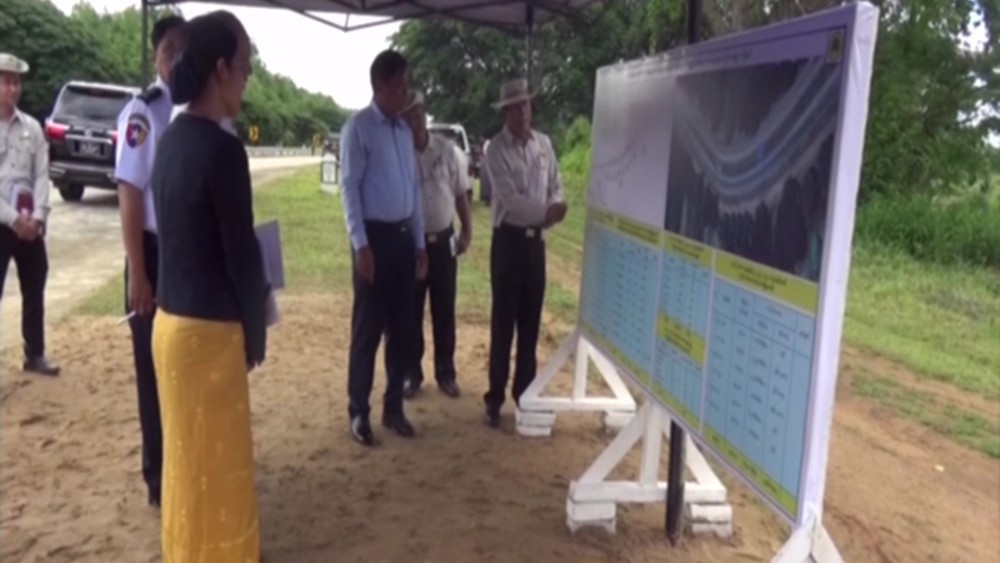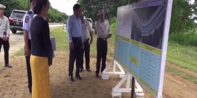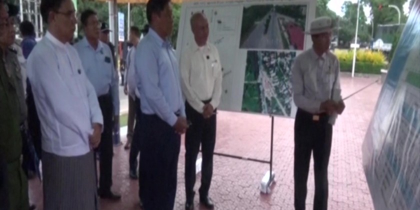 Then, the Deputy Prime Minister and party arrived at the briefing hall at the intersection of Yangon-Mandalay old highway and Bago city road and the Director General of Department of Highways (Bago) clarified the completion of the installation of road directions and road signs within Bago region and the Deputy Prime Minister fulfilled the requirements.