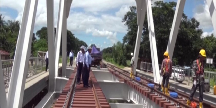 The Deputy Prime Minister and Union Minister for Transport and Communications Admiral Tin Aung San and officials made an inspection on Yangon-Taungoo railway section upgrading process under Yangon-Mandalay railway upgrading project and installing road signs along Nay Pyi Taw- Taungoo Highway and Bago-Yangon Union Highway.