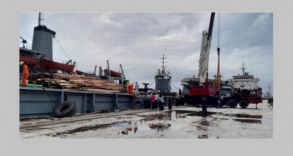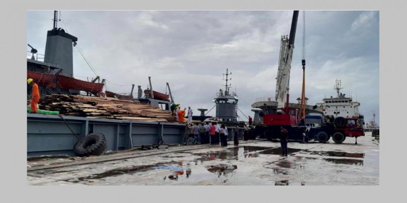 For the use in the natural disaster rescue and rehabilitation works, the MERCURY FORCE vessel loaded 1463.28 tons of relief items including 300 tons of sawn timbers, 154588 corrugated iron sheets, 90230 ridge of roofing CI sheets, 6905 visses of galvanized nails, 7265 visses of nails, 30000 bricks, one crane car, 60 power tillers and 60 engines, 300 barrels of fuel, 200 boxes of water purifying machines, 11.4 tons of foodstuffs and commodities contributed by the Ministries of Defense, Legal Affairs, Agriculture livestock and Irrigation, Cooperative and Rural Development, Natural Resources and Environmental Conservation, Energy, Construction and Mon State Government, left The Myanmar Terminal (TMT) for Sittwe of Rakine State in the evening on 20th June.