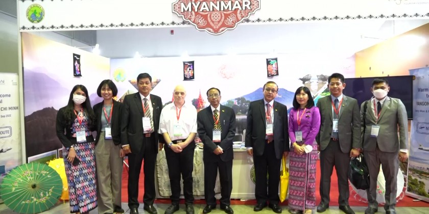 The Ministry of Hotels and Tourism is putting constant efforts of actively participating in the international and regional collaborations for the development of tourism industry and market promotion and the international tourism expos for boosting country’s image and tourists destinations. Accordingly, the Union Minister for Hotels and Tourism Dr. Htay Aung attended the 16th International Travel Expo Ho Chi Minh City held from 8th to 10th September, 2022. A high level travel forum under the topic of “Growth Forward Together” attached to the travel expo was organized and attended by the Union Minister and Myanmar Ambassador to Viet Nam, officials from the ministry and representatives from Myanmar Tourism Federation and Myanmar Tourism Promotion Board.
