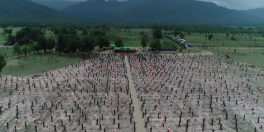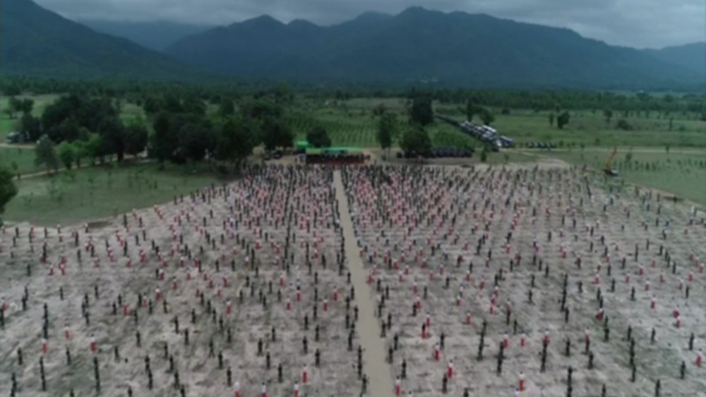 Then, the Senior General and wife grew a teak sapling. Likewise, the SAC Vice-Chairman Deputy Commander-in-Chief of Defence Services Commander-in-Chief (Army) and wife, Union ministers and their wives, and party planted saplings in the set places.