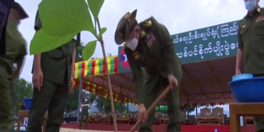 The first monsoon-tree growing ceremony of families of the Office of the Commander-in-Chief (Army, Navy and Air) for 2022 took place near Yezin Dam of Zeyathiri Township on 2nd June, attended by Chairman of the State Administration Council Commander-in-Chief of Defence Services Senior General Min Aung Hlaing who planted a teak sapling.