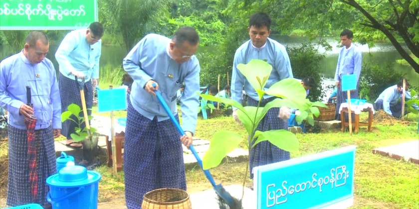The ceremony of 2024 Monsoon Season Tree Planting and putting fish seeds organized by the Ministry of Investment and Foreign Economic Relations was held at the designated area to the west of office No (1) in Nay Pyi Taw in the morning on 2nd July and attended by the Union Minister Dr. Kan Zaw and wife, Deputy Minister Dr. Wah Wah Maung, officials and personnel of the Ministry.