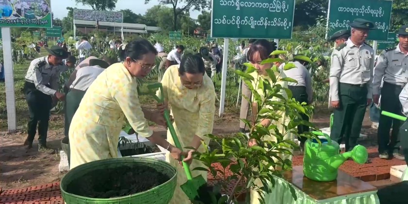 The Chief Minister and wife later distributed saplings for planting. A total of 1,500 trees were planted during the event. It is reported that over 1.4 million trees are planned to be planted in Bago Region during this monsoon season, starting from May.