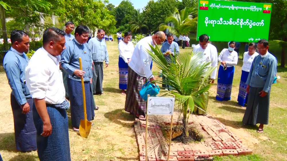 Then, the Union Minister and party viewed planting of saplings. A total of 169 saplings including GantGaw, star flower, coconut, teak, ironwood, gumkino, Acacia Mangium and other perennial plants were planted during the ceremony.