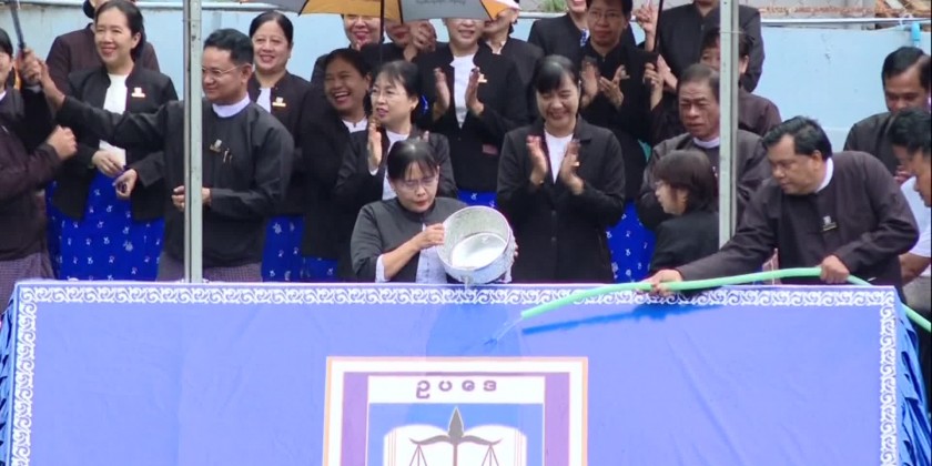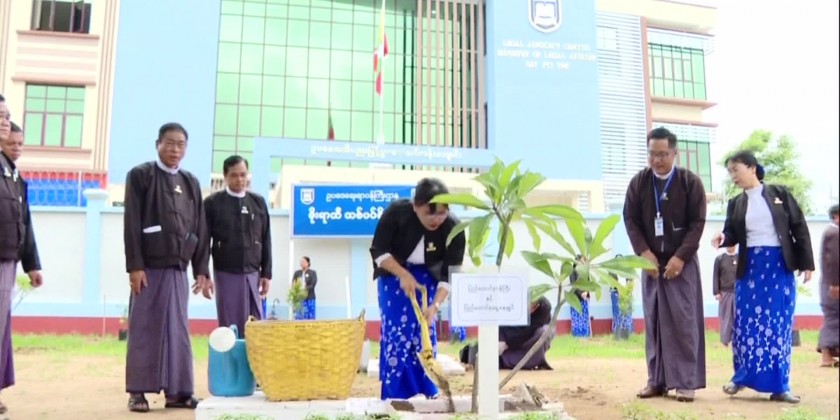 Next, the monsoon season trees planting was held at the Legal Knowledge Dissemination Training School in Zawana ward in Uttarathiri Township of Nay Pyi Taw Council area and the Union Minister and Union Attorney General planted temple tree also known as frangipani and the Deputy Minister Deputy Attorney General and Senior officials planted saplings of Frangipani, golden shower, ASEAN Eugenia and Gangaw trees.