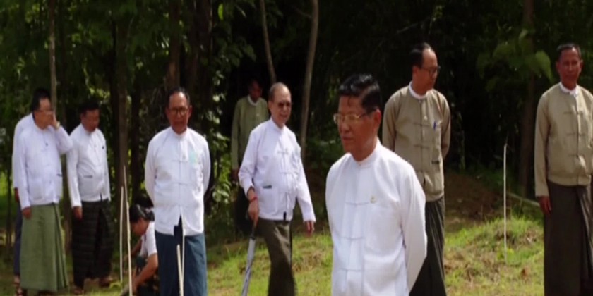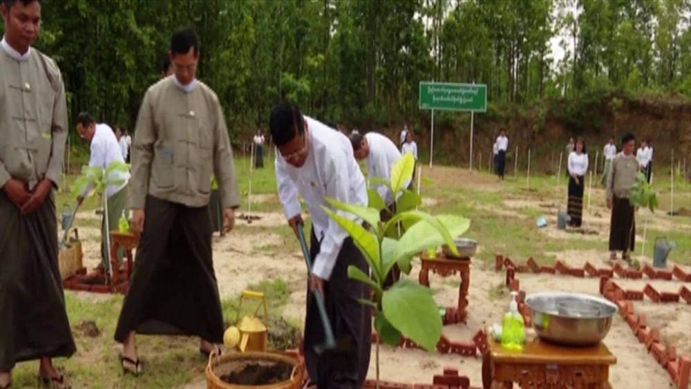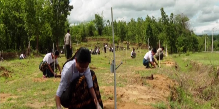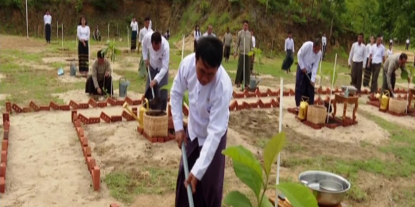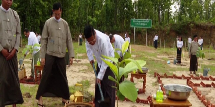 First, the UEC Chairman and commission members planted teakwood saplings at the designated places and the permanent secretary, Deputy director generals, officers and staffs grew the teakwood and Yamane or (Gamhar) tree.