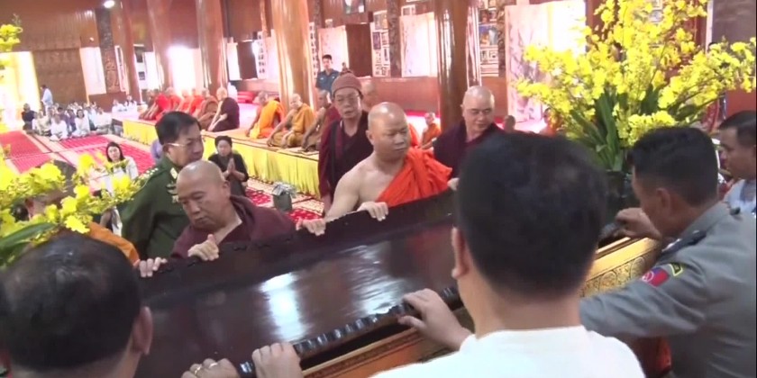 Patron of Naga Hna Kaung Monastery in Tachileik of Shan State (East), State Ovada Ceriya Abhidhaja Maha Rattha Guru Abhidhaja Agga Maha Jotika Dr Bhandanta Dhamma Thiri, passed away on Thursday. The remains of the Sayadaw are being revered at the monastery for obeisance.