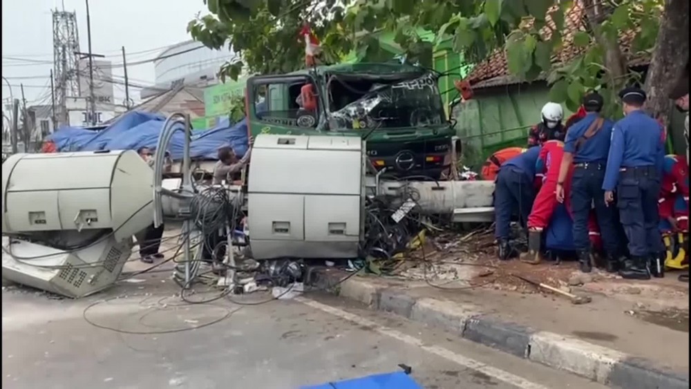 The children were waiting for a ride home after finishing classes when the truck smashed into a bus stop on the main road connecting the Bekasi area and East Jakarta.There were about 20 students at the scene, and those who were injured were taken to two hospitals.The truck also hit a telecommunications pole that fell down and crushed motorbikes and a pickup that was crossing the road. The driver of the pickup also died.Police detained the driver of the truck as part of an investigation.