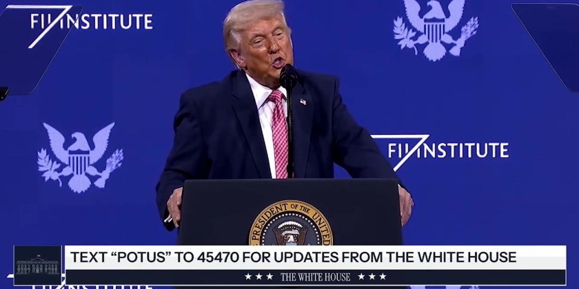 US President Donald Trump praised the US military and reiterated his “Peace through Strength” approach, warning that “sometimes it has to use it”.