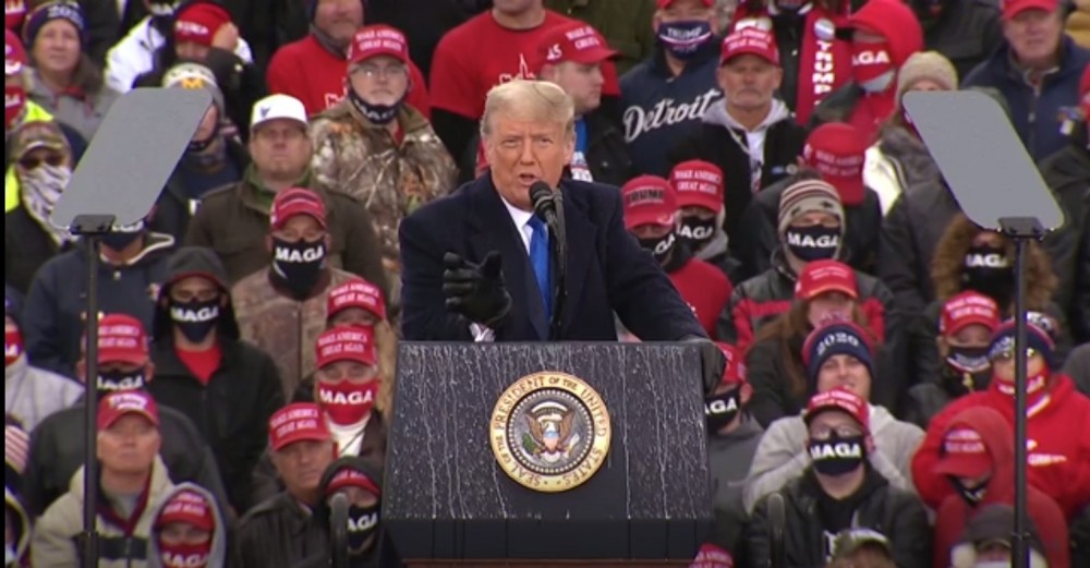 US President Donald Trump has started a busy day of campaigning with a cold, rain-soaked rally in Lansing, Michigan. Most polls show Trump trailing Democrat Joe Biden in a state that Trump won narrowly in his 2016 victory. The president told the thousands that gathered on Tuesday that “seven days from now we’re going to win the great state of Michigan.”