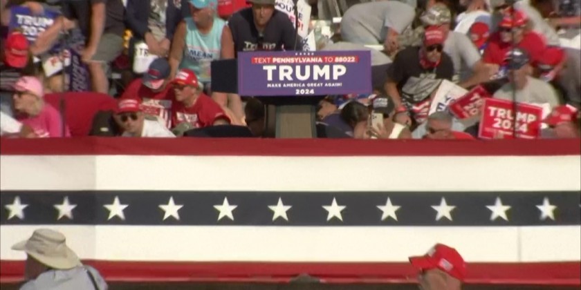 Former president Donald Trump was rushed off stage by Secret Service agents Saturday after a series of loud bangs that sounded like possible gunshots were heard at the start of a campaign rally in Pennsylvania.