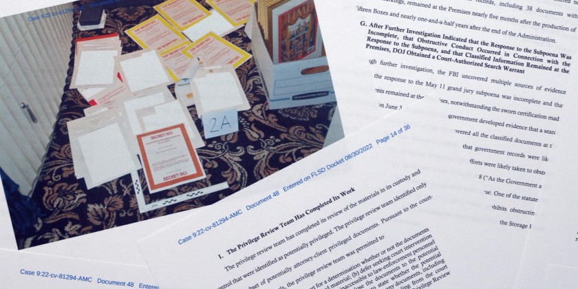 The inventory compiled by the Justice Department reveals in general terms the contents of 33 boxes and containers taken from an office and a storage room at Mar-a-Lago during the Aug. 8 search. It also makes clear for the first time the volume of unclassified government documents at the home even though presidential records were to have been turned over to the National Archives and Records Administration.